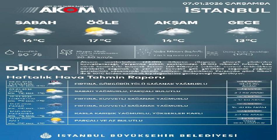 İstanbul Büyükşehir Belediyesi (İBB) Afet Koordinasyon Merkezi’nden (AKOM) yapılan açıklamada, İstanbul başta olmak üzere yurdun büyük bölümünde etkili olan soğuk ve yağışlı havanın etkisini artıracağı belirtildi.