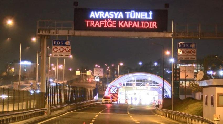 Avrasya Tüneli’nin girişinde bulunan tabelalara ‘Avrasya Tüneli trafiğe kapalıdır’ yazılarak tüneli kullanmak isteyen sürücüler uyarıldı. Konu ile ilgili yapılan açıklamada, “10 ve 11 Aralık 2020 tarihleri 00.01 – 05.00 saatleri arasında işletme kalite standartları kapsamında gerçekleştirilecek çalışmalar nedeniyle Avrasya Tüneli her iki yönde geçici olarak hizmet vermeyecektir” denildi.