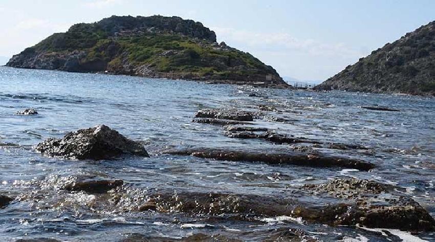 Muğla’nın Bodrum ilçesi Gümüşlük Koyu’nda aniden çekilen deniz suyu 3 bin 500 yıllık tarihi Myndos kentine giden kral yolunu ortaya çıkardı. Yaz aylarında binlerce turistin ziyaret ettiği Myndos kentine giden yolun bu mevsimde ortaya çıkması vatandaşlarda merak uyandırdı. Çok sayıda vatandaş Tavşan Adası’na giden kral yolunu görmek için Gümüşlük Koyu’na geldi. 150 metre uzunluğunda 2.5 metre genişliğindeki kral yolundan antik Myndos kentinin bulunduğu Tavşan Adası’na gitmek isteyen vatandaşlar, havaların ısınması durumunda kral yolu kapanmadan çıplak ayakla yürümek istediklerini ifade etti. Adaya giden kral yolu drone ile görüntülendi.