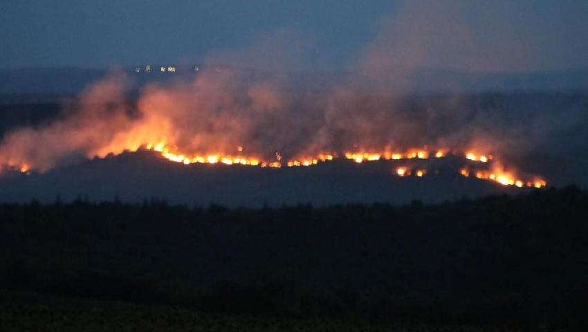 Bulgaristan’da başlayan orman yangını Türkiye – Bulgaristan sınır hattında ilerleyişini devam ettiriyor. Rüzgârın da etkisiyle zaman zaman ürkütücü boyuta ulaşan alevler, Edirne’nin Lalapaşa ilçesine bağlı sınır köylerden de görülebiliyor. Bulgaristan’da yangının devam ettiği bölgenin karşısında yer alan Saksağan Köyü’nde yangının büyüklüğü gözler önüne serildi.