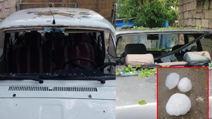 Dolu yağışından dolayı ise yaklaşık 7’e yakın aracın camları dayanamayarak kırıldı.