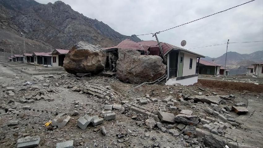 Patlatma nedeniyle yamaçtan kopan büyük kaya kütleleri yuvarlanarak yeni yerleşim yerindeki boş olan iki eve çaptı.