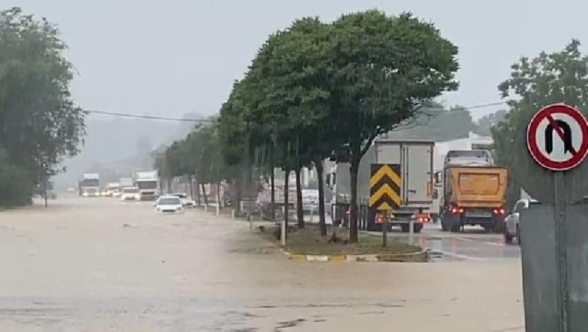 Düzce-Zonguldak yolunda ulaşıma şiddetli yağış engeli