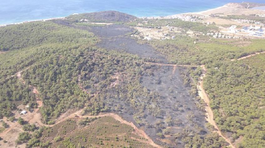 Ayvalık Şeytan Sofrası’nda Yanan Bölge Havadan Görüntülendi
