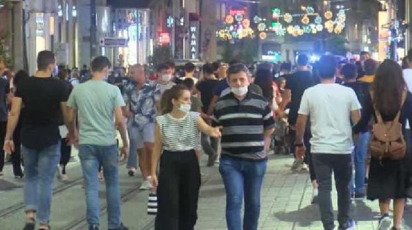 Koronavirüslü hasta hasta sayısında artış olmasına rağmen akşam saatlerinde İstiklal Caddesi'nde dikkat…