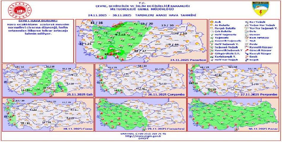 Meteoroloji Genel Müdürlüğü (MGM) tarafından yayınlanan son hava tahmin raporlarına göre, yurdun büyük bir bölümünde sağanak yağışlar etkili olacak. Özellikle kuzey, iç ve batı bölgelerde parçalı ve çok bulutlu bir hava beklenirken, bazı iller için kuvvetli yağış uyarısı yapıldı.