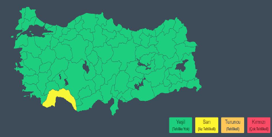 Özellikle Muğla (Doğu kesimleri), Antalya, Isparta, Düzce, Zonguldak, Bartın illerindeki vatandaşların dikkatli olması konusunda uyarıda bulunuldu. Bu çevrelerde beklenen yağışların yer yer kuvvetli olacağı belirtildi. Antalya için ise sarı kodlu uyarı verildi.