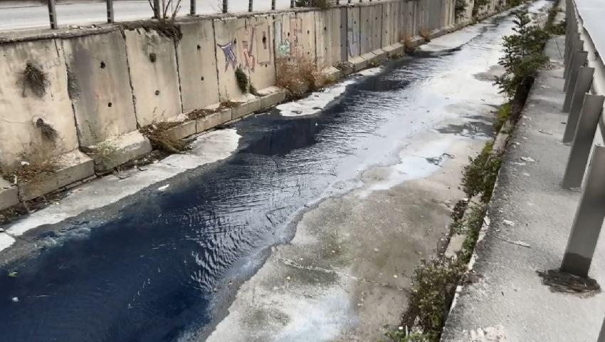 Esenler’de bulunan Ayvalıdere yağmur suyu tüneli ve atık su kanalından mavi renkte su akmaya başladı.