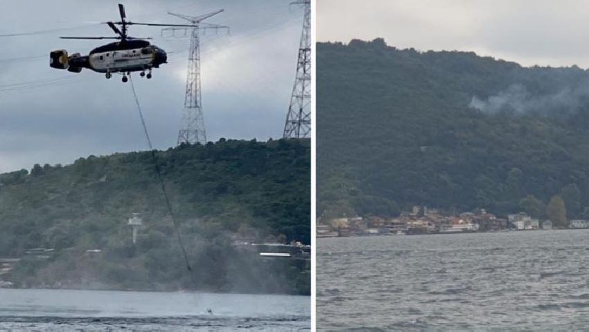 Öte yandan yangına helikopterle de müdahalede bulunuluyor.