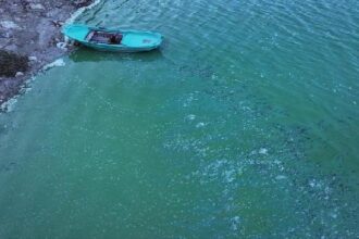 Terkos Barajı’nda suyun bazı bölümlerinin yeşile büründüğü görüntülendi.