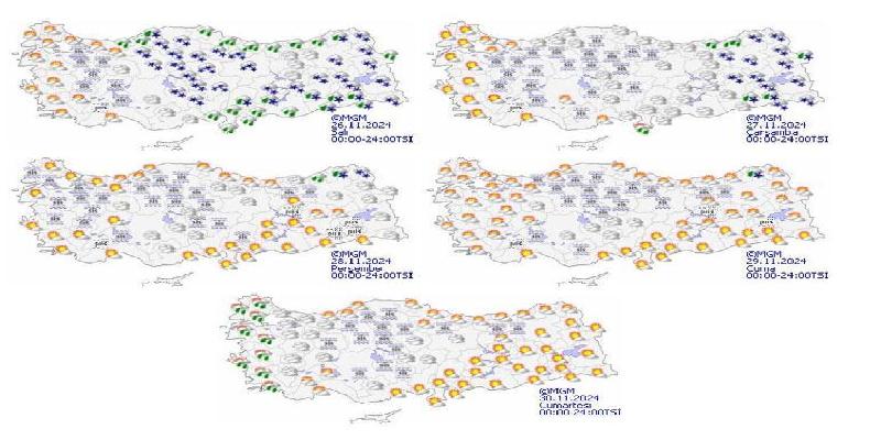Meteoroloji Genel Müdürlüğünce yapılan tahmine göre, bugün akşam saatlerinden sonra Samsun, Ordu ve Amasya’nın yüksek kesimleri, Çorum ve Tokat çevreleri ile gece saatlerinden sonra Yozgat, Sivas’ın batısı, Kayseri’nin kuzey ve batısı, Nevşehir, Aksaray ve Kırşehir’de aralıklarla kar yağışı etkili olacak.