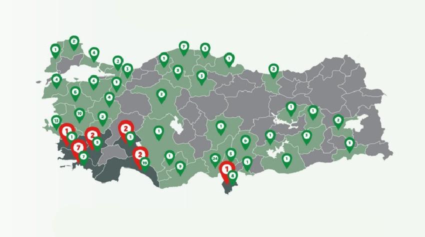Yine İletişim Başkanlığı tarafından paylaşılan haritayı incelediğimizde özellikle Anadolu’nun iç bölgeleri, kuzeyi ve kuzey batısındaki yangınların kontrol altına alındığını görüyoruz. Devam etmekte olan 15 yangın ise genel olarak ülkenin güney batı kıyısında varlığını sürdürmeye devam ediyor.