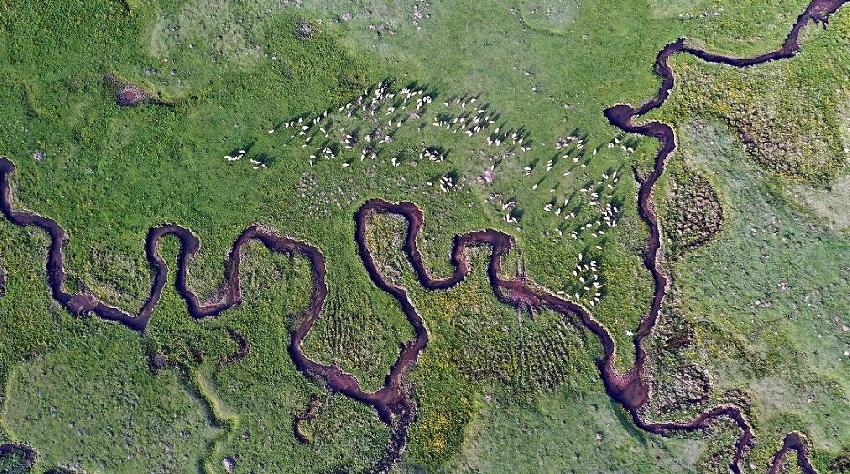 Büyük ölçüde boş ve sakin olan yayla, kuş sesleriyle yankılanıyor. Yaylada hayvancılık yapan çobanlar yüzlerce koyunu otlattı. Yayladaki doğal güzellik drone ile havadan görüntülendi.