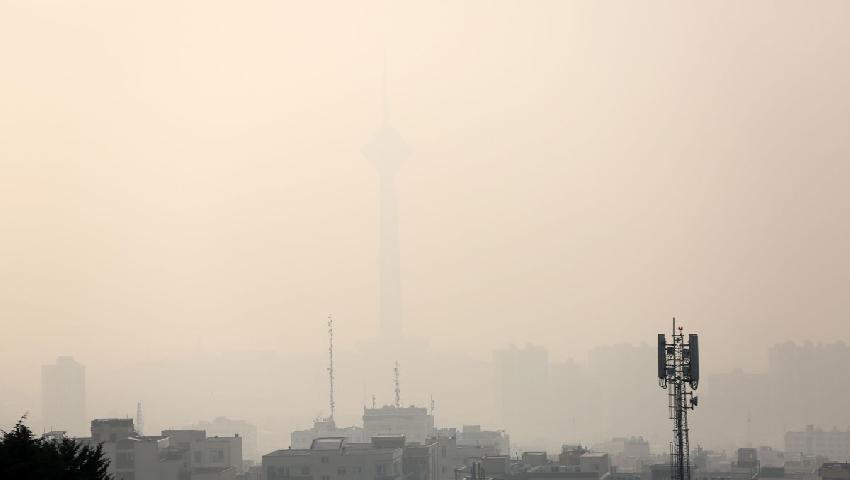 Şehrin sembol yapılarından Milad Kulesi de yoğun hava kirliliği nedeniyle bulanık bir silüete büründü.