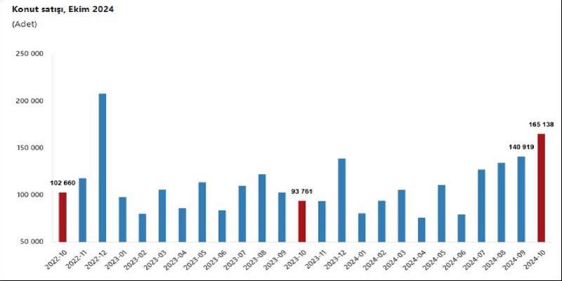 TÜİK, ekim ayına ilişkin konut satış istatistiklerini açıkladı. Buna göre Türkiye genelinde ekim ayında 165 bin 138 konut satıldı.